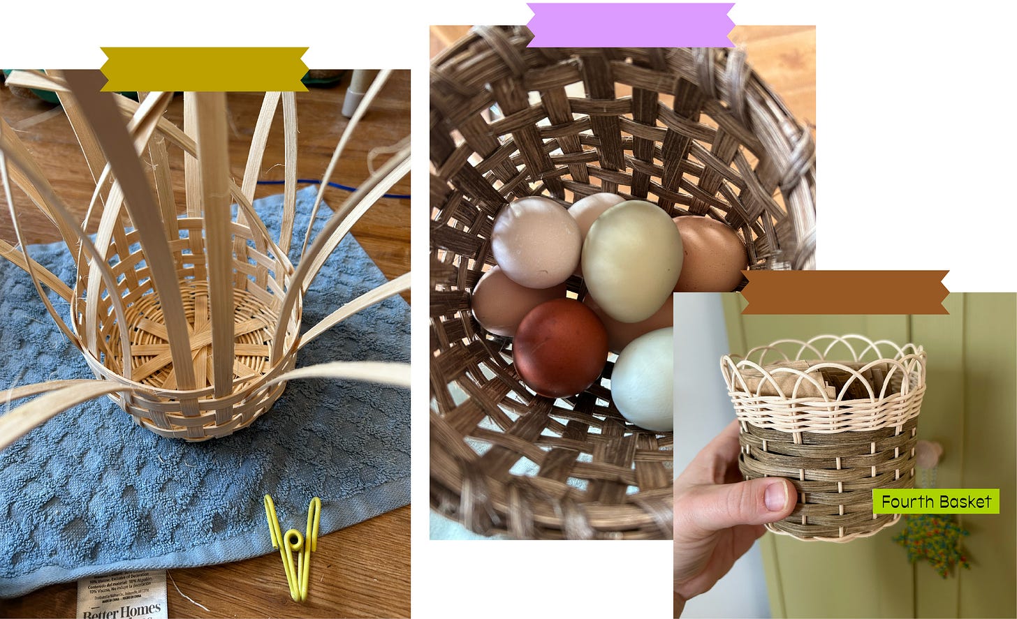 In March, I visited my local Joann’s for the last time and that was also the month I taught myself how to make reed baskets. Several years ago I thrifted a basket making book and some time after that I bought some reed. Both set untouched in my room and under my bed until March of 2025 when I suddenly had the notion to make a basket. I think it came about because I wanted a basket for collecting eggs and remembered I had the reed. Why buy one for $9.99 when I can make one with materials I already have that I only just now remembered I had? I made 4 pretty decent baskets and then my brain was like “okay we did that. What’s next?” I don’t know how other people operate, but for me, I get a thing in my head and I have to execute it immediately. Then once I’ve done it, I can move on.